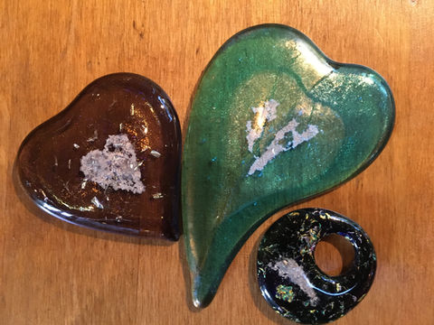 These unique pieces incorporate human or animal ashes into the glass. The object is to create a touch stone for that person or pet. Created in consultation with the family each piece hopefully represents colours & shape & words that serve as a soothing memory.